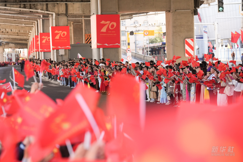 9月25日中午,习近平总书记出席新疆维吾尔自治区成立70周年庆祝活动后,乘专机返回北京。当天,从乌鲁木齐市区到机场沿途,欢送的人群,挤满了道路两侧。