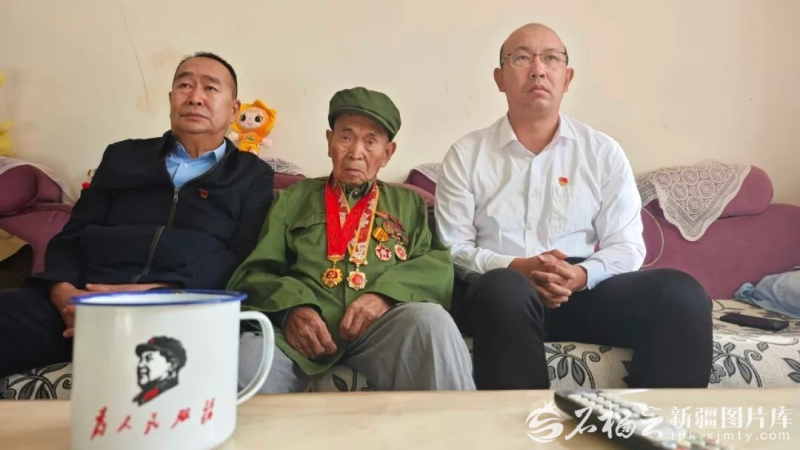百岁老军垦白玉伦在家人的陪同下观看新疆维吾尔自治区成立70周年庆祝大会。图/一团金银川镇新闻发布平台提供 一大早,百岁老军垦白玉伦和他的儿子、孙子就早早坐在电视机前等待观看新疆维吾尔自治区成立70周年庆祝大会。白玉伦身着军装、佩戴勋章,和儿子、孙子一同观看庆祝大会,老人不时回忆起艰苦创业的往事。 “70年风雨兼程,70年砥砺奋进。习近平总书记指出,兵团是实现党中央关于新疆工作总目标的重要战略力量。作为兵团后代,我会像爷爷和爸爸那样,扎根这片热土,把爱献给自治区和兵团,祝我们自治区和兵团的明天更美好!”白玉伦孙子白鹏飞说。 (石榴云/新疆日报记者 王永飞,参与记者 马伊宁、陈蔷薇、黑宏伟、张云梅、李琳、曹华、李嘉妮、赵西娅、谢慧变、司路路、玛依古丽·艾依提哈孜,通讯员 任宽、陈为康)