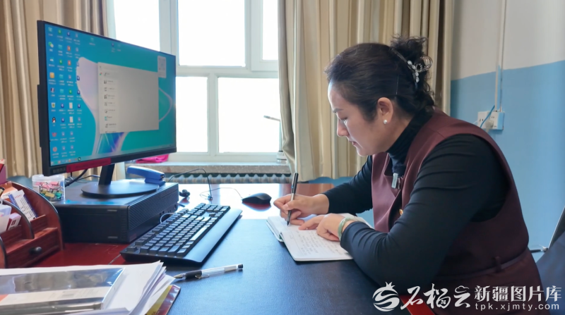 塔城市第六中学党总支书记闵晓青正在整理学习笔记。图/塔城市融媒体中心提供