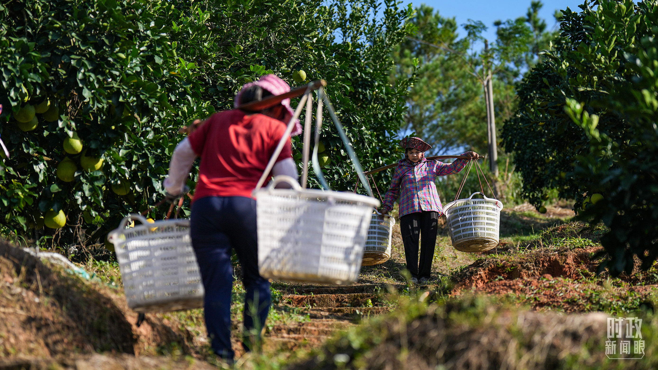 在11月8日的汇报会上,他进一步要求,完善区域协调发展、城乡融合发展体制机制,完善基本公共服务制度体系,扎实推进共同富裕。  △金柚成为乡亲们的致富果。(总台记者李晋拍摄)