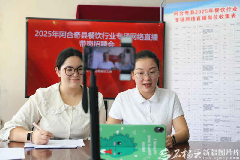 8月28日,阿合奇县举办了餐饮行业专场网络直播带岗招聘会。图片由阿合奇县人社局提供