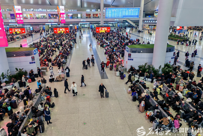 2月13日10时,乌鲁木齐站外,四面八方的旅客汇聚于此,有序排队进站。进站口和候车厅均有工作人员和志愿者值守,引导旅客进站候车。