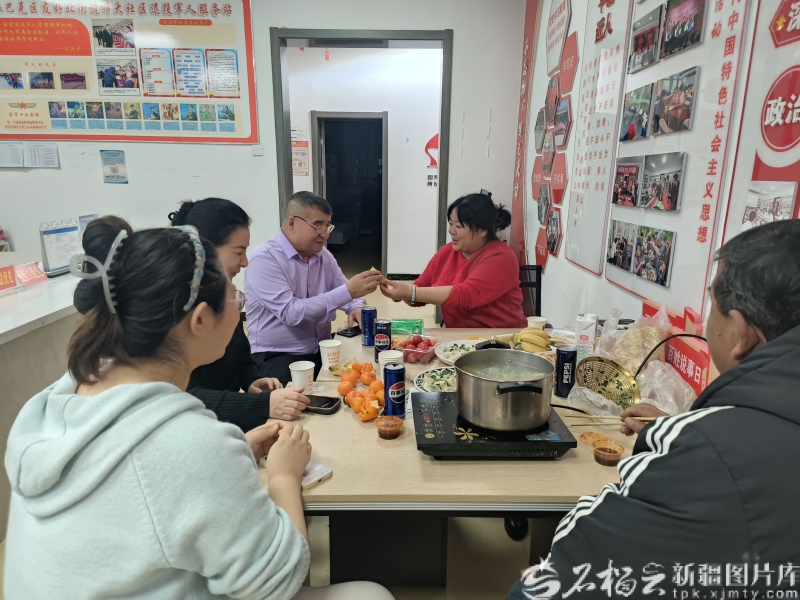 19时左右,居民海来提·努尔买买提来到社区,苏海娟一见他,便热情地迎上去,“今年你孩子忙,回来得晚,就和我们一起吃个年夜饭,热闹热闹。”苏海娟说。
