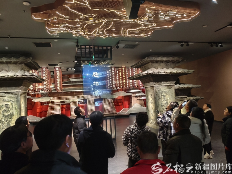 2月17日,位于轮台县的西域都护府博物馆里,一大早就迎来参观者。石榴云/新疆日报记者 张冬梅摄 上午10点,韩宇航带着妻儿成了当天第一批参观者。“趁着春节假期,带孩子来长见识,既能感受过年的氛围,又能让他了解咱们轮台的历史,比在家玩手机有意义多了。”韩宇航一边陪着孩子驻足看展,一边笑着说道。 馆内灯光柔和,浓厚的历史气息扑面而来,前来参观的游客们放慢脚步,或认真聆听讲解,或驻足拍照留念。来自四川的游客吴婷婷正陪着父母细细参观,脸上满是新奇。 “我们今年来轮台走亲戚过年,早就在新闻上关注到这座博物馆了,一直想来实地看看。”吴婷婷说,一家人吃完初一的早饭就赶了过来,这样的春节过得充实又有价值。 大厅两侧的古法琉璃上,四枚瓦当格外吸睛,讲解员排日代·帕尔哈提穿梭在展厅里,耐心地为游客讲解:“这四枚瓦当上刻着‘汉并天下、千秋万岁、与天无极、万岁长乐’,既是汉代物质文化与精神文化的结合,也藏着古人对国家昌盛、生活美好的期盼。” 从事讲解工作不到两年的她,凭着扎实的知识和生动的讲解,很受游客喜爱。“开馆到现在,游客就没断过,大家对西域都护府、丝绸之路的历史都特别感兴趣,问的问题也很细致。”排日代说道。 今年春节,博物馆主打沉浸式体验,让游客仿佛穿越两千年时光,直观感受卓尔库特古城遗址的风貌,重温丝绸之路的繁华。 除了沉浸式观展,博物馆还准备了一系列年味十足的免费互动活动,写书法、穿汉服、做通关文牒手工,大人小孩齐动手,沉浸式感受传统文化的魅力。一楼许愿墙、二楼祈福树上,挂满了游客手写的祝福卡片,红绸随风飘动,年味十足。