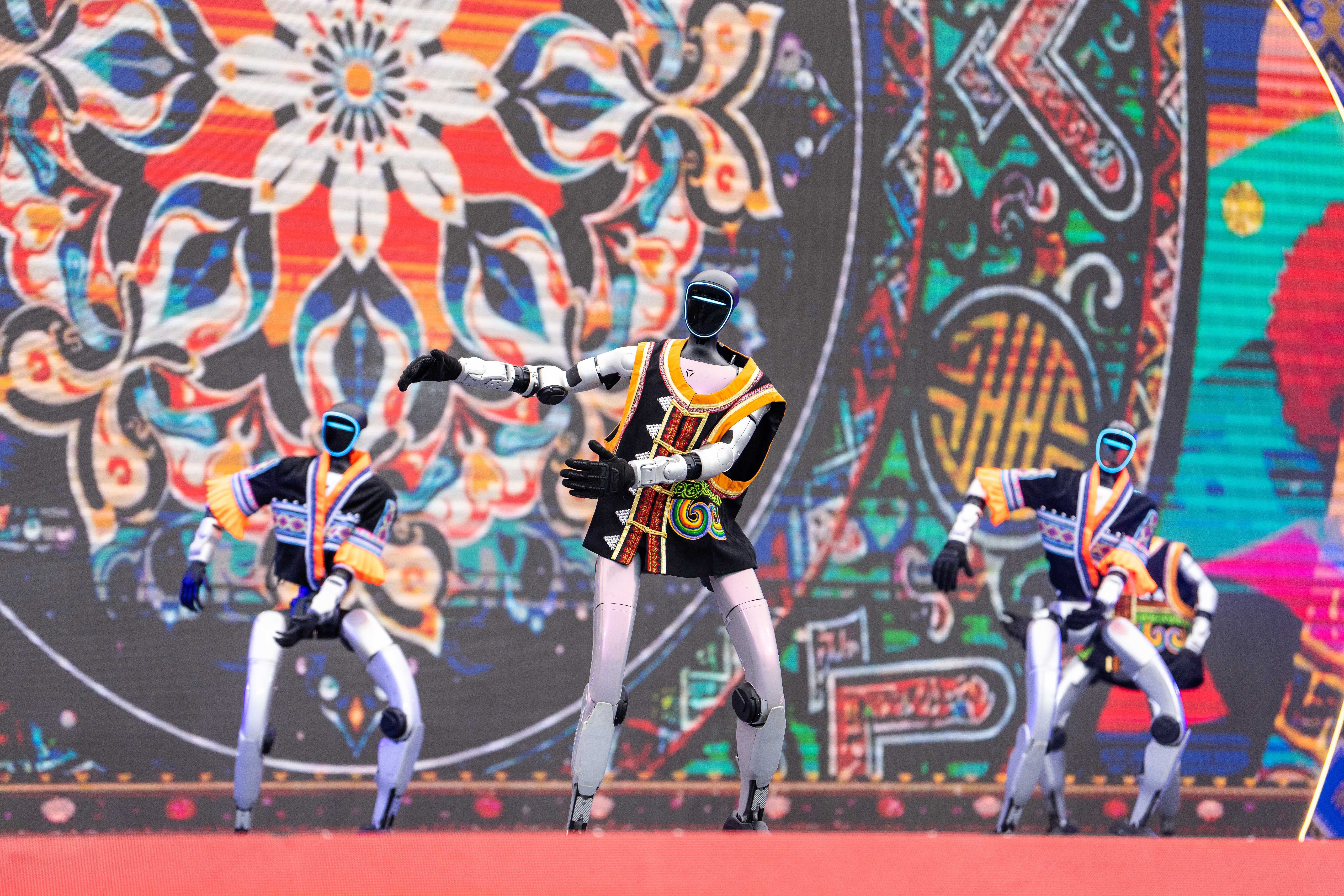 今年的巡游队伍中,还有一群特别的“演员”——身着绚丽民族特色服饰的机器人,伴着民族音乐灵活舞动,与街舞舞者同台“斗艳”,引得人们纷纷举起手机拍摄,喝彩声与掌声此起彼伏。