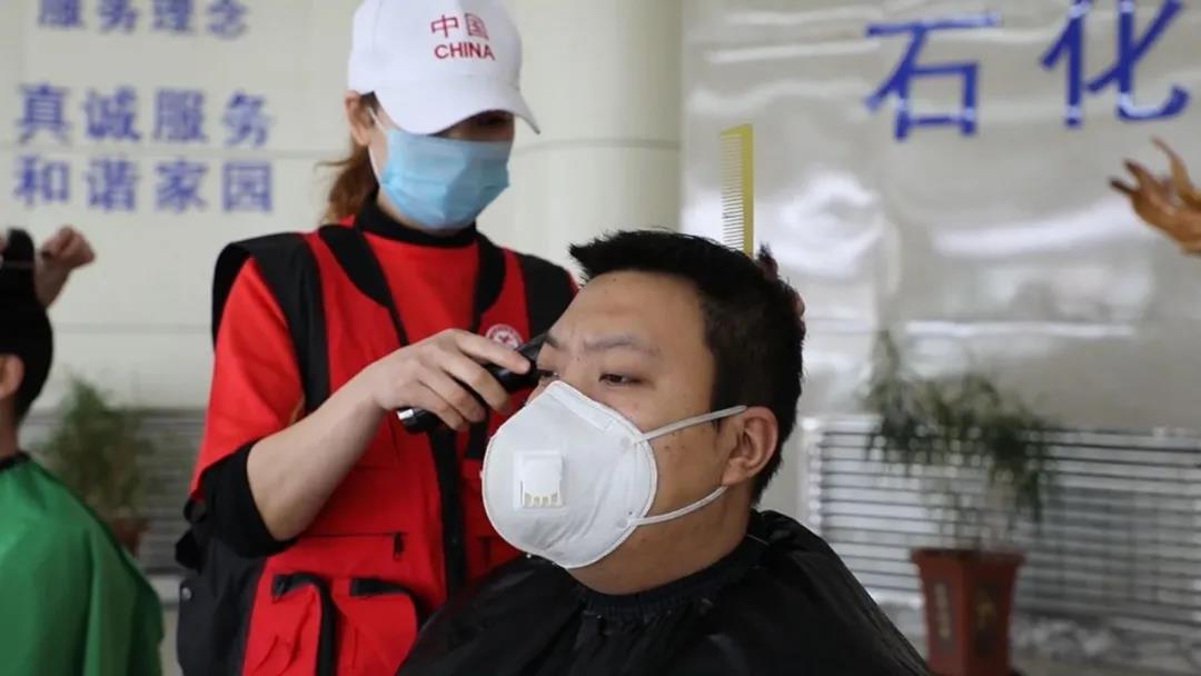 当了解到在岗员工理发难的情况,公司工会、团委积极联系区志愿者协会,邀请9名理发师志愿者,分批在青年公寓为员工提供公益服务。