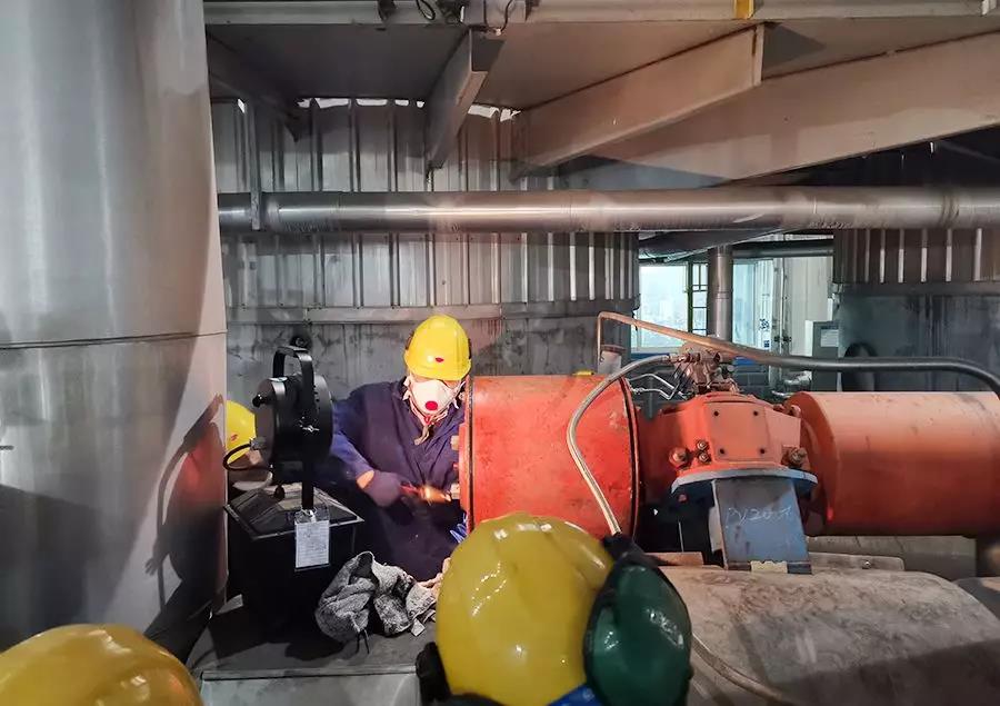 要查明原因必须将阀门解体,但阀门体积过大,结构复杂,晚上光线不好,生产副主任张晓乐与值守的三位骨干前来助阵。张晓乐说:“现在是疫情防控时期,生产上不能有任何差错,抢进度就是抢时间,挑灯夜战也要修好!”