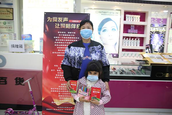 看到宣传海报后,住在四区的刘丽娜奶奶与邻居家的孩子米丽,携带两本新华字典和水彩笔等文具来到这里捐赠。