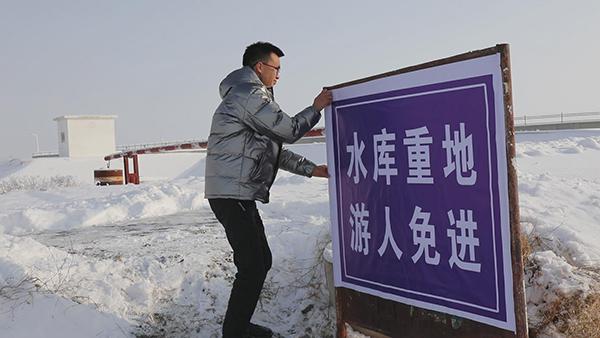区农业和水务局的工作人员在现场设立了“水库重地游人免进”的告示牌,在一些进出口处设置了障碍物。