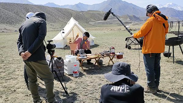 4月27日上午,记者来到独山子大峡谷,看到一群特殊的游客,他们是广东卫视《老广的味道》栏目工作室的工作人员。节目摄制组在大峡谷玻璃桥南端搭起了帐篷,正在进行《去野吧,山川》节目的拍摄。