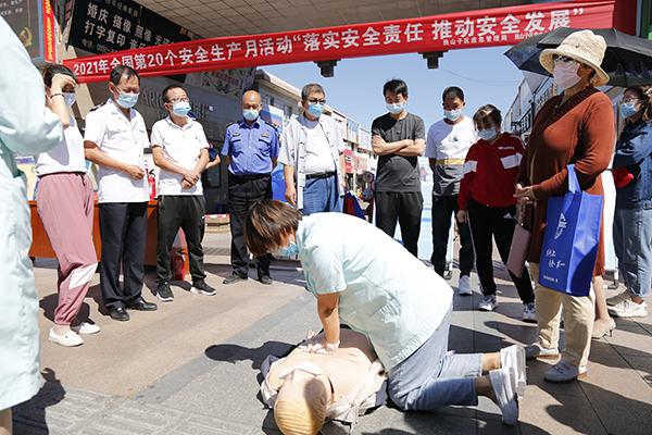 6月16日,区应急管理局联合区公安分局、区消防救援大队、区卫健委、区市场监督管理局等20余家单位,在武昌路市场南门开展2021年安全生产月咨询日活动。宣传人员向市民介绍灭火器的使用方法及注意事项,消防员向市民讲解家庭安全用火、用电常识。