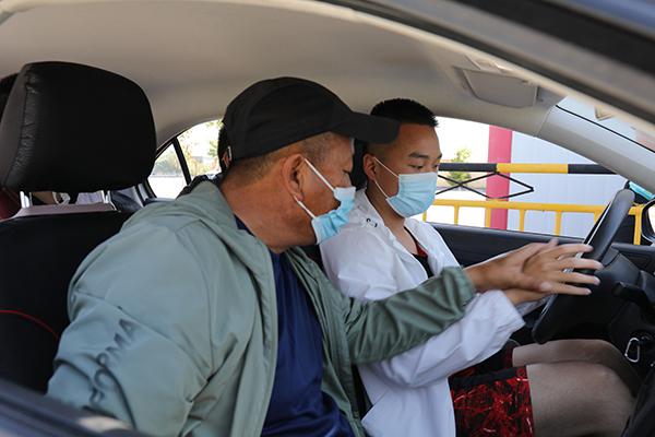 6月18日,记者在独山子鑫杰驾校训练场地看到,学员练车过程中,教练严把安全关,全程跟进,车不离人,人不离车。