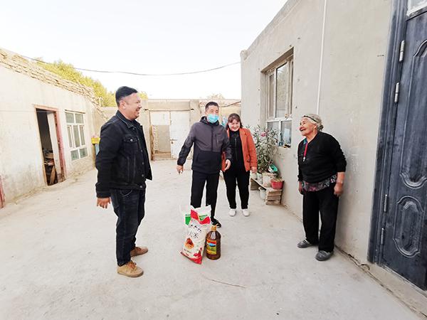 10月14日,萨依艾日克村“访惠聚”驻村工作队、村两委组织25名党团员、志愿者,开展敬老爱老活动。工作队还买了米、面、油等物品,慰问了村里80岁以上的老人。