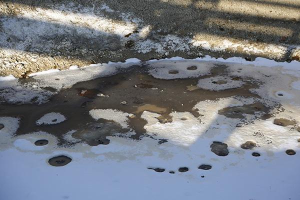 阳光明媚,“千眼油泉”上面虽覆盖了一层雪,但依然能看到冒出的油泡。油泉的外廓形状似一只眼眸,底部冒出气体,形成无数涟漪,好似数千只小眼睛,“千眼油泉”因此得名。