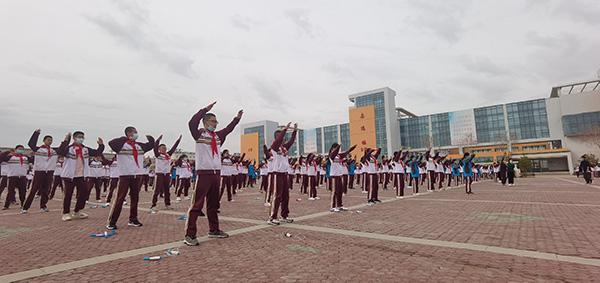 短短10分钟的运动,让初一学生派依力满头大汗:“真的太累了!不过减肥效果还是挺好的,我瘦了好几公斤了,我的目标是减重16公斤。” “双减”工作开展以后,学生从过重的学业负担中解放出来,拥有了相对充足的时间和精力进行体育锻炼。 第三中学根据学生的身体状况,增加了大课间体育锻炼项目,冬季以长跑为主,春、夏、秋三季以跳操为主。 阳光明媚,春暖花开,正是强身健体时。除了做广播操外,体育组老师还精心编排了减脂操和绳操,提高学生身体的灵活性、柔韧性,锻炼肌肉收缩,让学生在缓解学习压力的同时享受运动带来的快乐。 阳光大课间早上和下午都有,各30分钟,学校安排一名体育老师统一指挥大课间的练习。学生于琛旭说:“我最大的收获就是腿部肌肉增强了,跑1000米更轻松了。” 在阳光大课间休息时间,记者看到,完成统一的体育锻炼项目后,各班针对中考体育项目开展自由训练。有的班级在班主任的带领下练习颠球,有的在进行投掷实心球和立定跳远的练习。第三中学党总支副书记刘涛说:“我们保证学生每天有一个小时的锻炼时间,要达到提高学生身体素质的目的,让学生的运动成绩达标。” 中考,体育成绩是重要的考核标准。为了让学生提高体育成绩,学校以“项目化”为抓手,采用选课走班模式,开设了极限飞盘、篮球、乒乓球、羽毛球、足球、瑜伽、健美健身操等课程,让学生选一门自己喜欢的体育运动项目进行学习,让学生爱上运动。 目前,95%以上的学生都选了运动选修课。