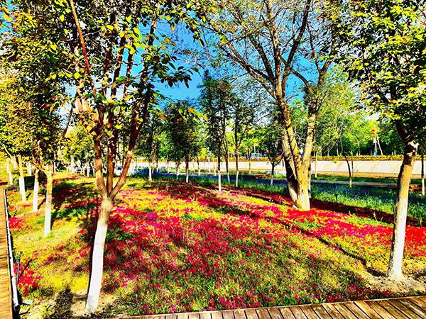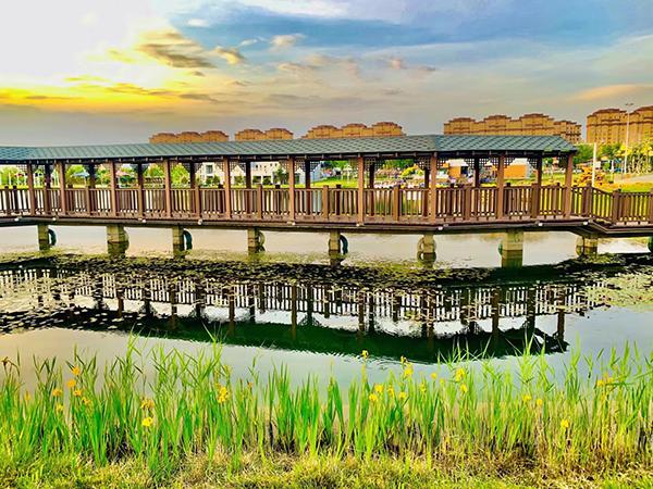 傍晚,城市公园。市民或在微风中漫步,或环湖骑行,在这恬静宜人的氛围中享受秋天的清凉。