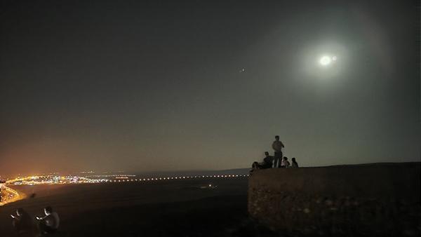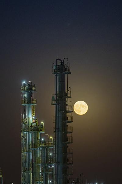 八月十五,月圆之夜。不少市民登上泥火山,在柔美的月光下欣赏独山子美丽的夜景,久久不愿离去。圆月来访厂区,炼化装置愈发雄伟。