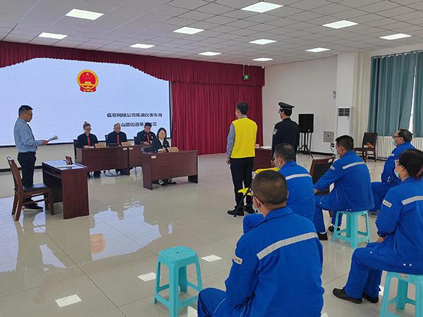 9月22日,独山子石化信息网络公司协同独山子区人民法院、金山路街道办第五社区党委,开展了一场“沉浸式”员工安全教育培训分享会,来自信息网络公司炼油仪表车间的30余人参加了活动。