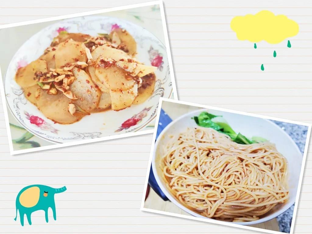 但是,我还是不满足,我想在现有的基础上换个花样。于是,我又做了凉菜和凉面。