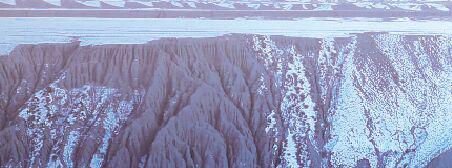 新疆的风光大都以自然元素起家,独山子泥火山西南端的大峡谷也算一个。历经远古的周折,粗犷警遒,虽春夏秋冬景致不一,但气质一脉相承,经过了时光磨砺和自然颠覆,一反巧媚倡天机,尽是率真雄拙,飞扬着大自然独特的审美表达。