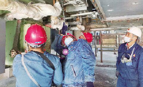 抬起头,朵朵白云飘浮在碧蓝的天空,瘦长的装置笔直地往上延伸,有捅破九霄的架势,赋予装置高大宏伟的气魄。在装置不同的部位,高低远近处,系挂安全带、头戴安全帽的施工人员正在倒盲板、恢复保温等,紧张地作业。他的身影看上去很小,灵动、利索地穿梭在装置间,让人感觉他们能创造无限的可能,感觉节日里的“坚守”是最美的景。