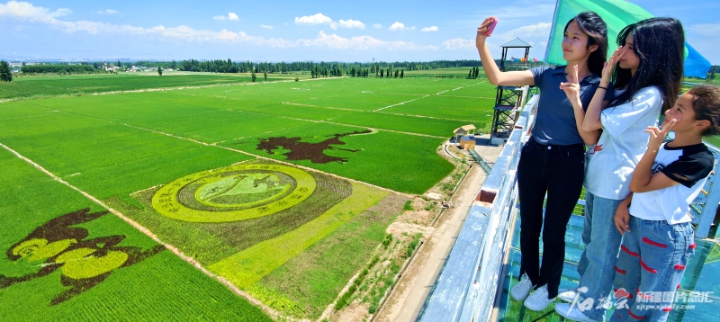 7月16日,在“如意·稻田画”基地,游客拍照游玩。华岩明摄