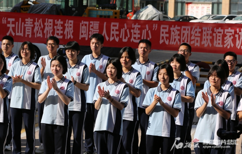 7月18日,来自福建省长乐华侨中学的师生在昌吉市参加“天山青松根连根 闽疆人民心连心”民族团结联谊家访活动启动仪式。 7月18日,“天山青松根连根 闽疆人民心连心”民族团结联谊家访活动在昌吉市启动。在接下来的一周里,来自福建省长乐华侨中学的20多名师生将走进福建对口援助的昌吉回族自治州奇台县半截沟镇开展民族团结共建活动。 石榴云/新疆日报记者 蔡增乐摄