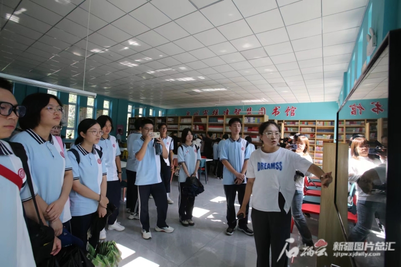 7月18日,福建省长乐华侨中学师生在参观昌吉市第十一小学。