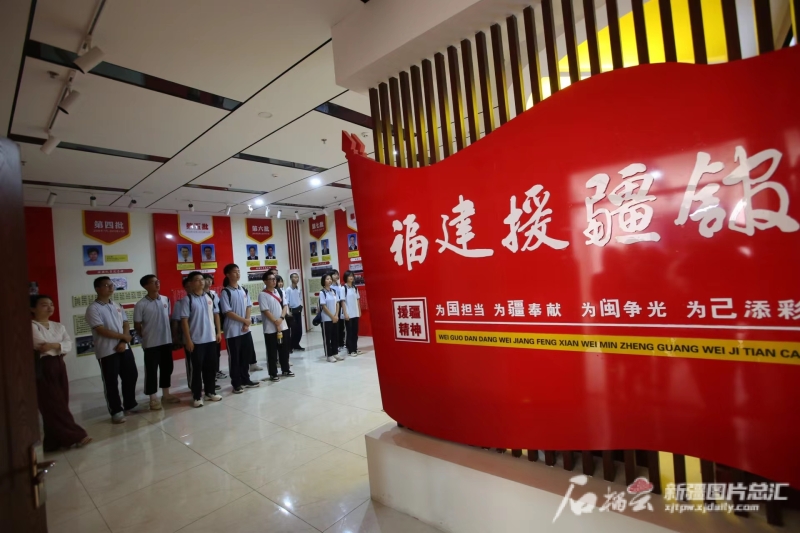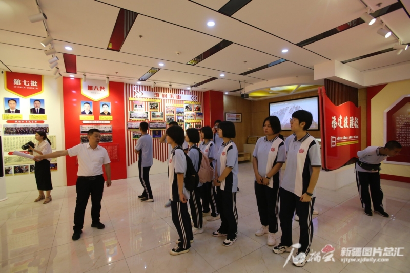 7月18日,福建省长乐华侨中学师生在昌吉市参观福建省对口援疆前方指挥部、援疆馆。