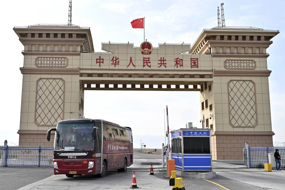 11月9日,一辆客车从都拉塔口岸国门驶入中国 / 李鑫 摄