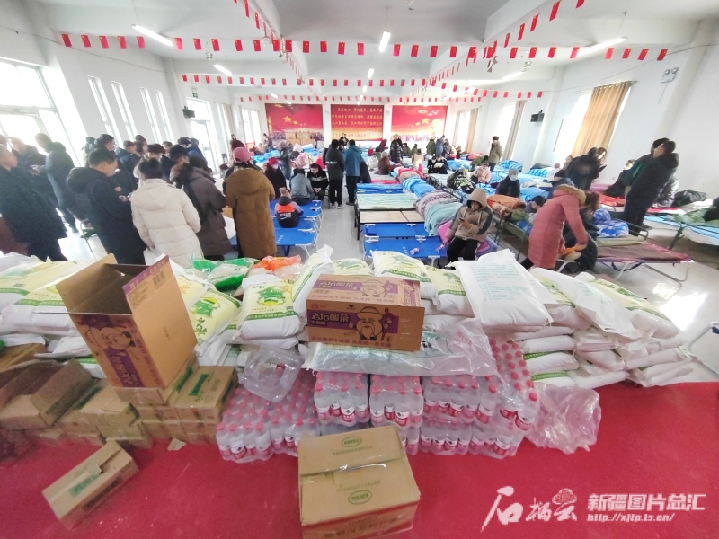 1月24日,尤喀克亚曼苏村安置点内的救援物资和群众生活环境。石榴云/新疆日报记者 邹懿摄