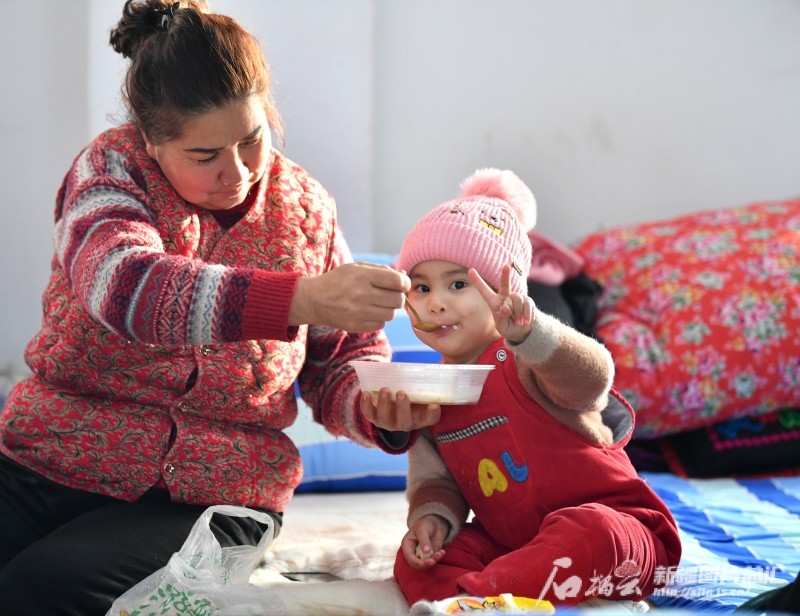1月24日中午,阳光透过乌什县亚曼苏柯尔克孜族乡尤喀克亚曼苏村居民安置点的窗户,洒在老人和孩子们的身上。