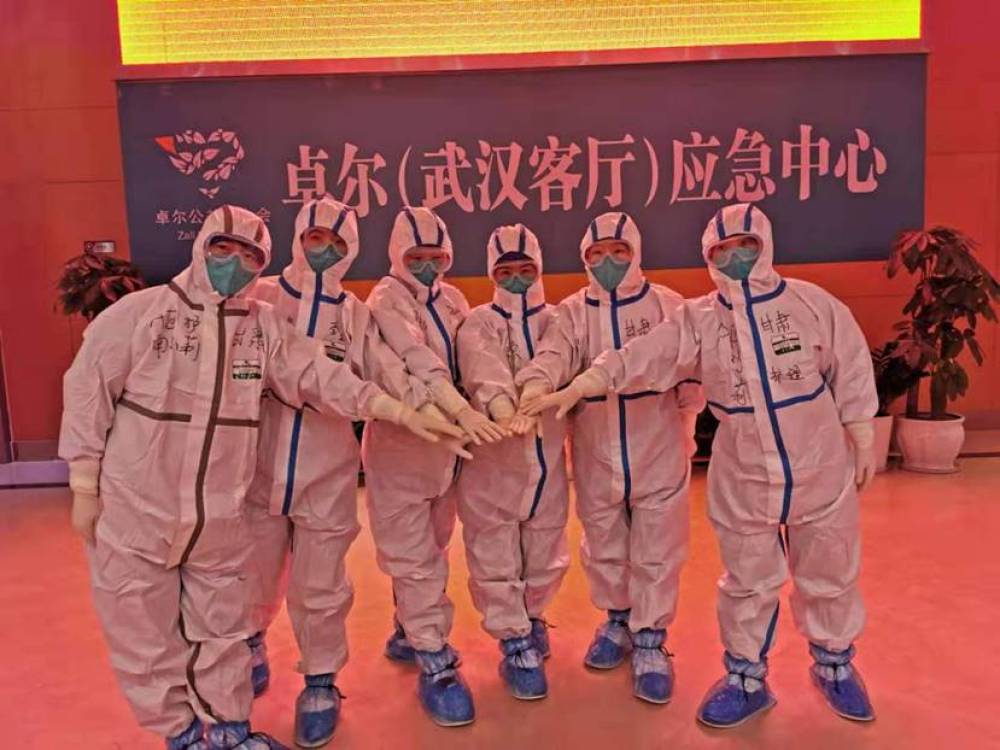 甘肃省第二批援助湖北医疗队医护人员在卓尔(武汉客厅)应急中心准备开展工作。(甘肃省人民医院供图)