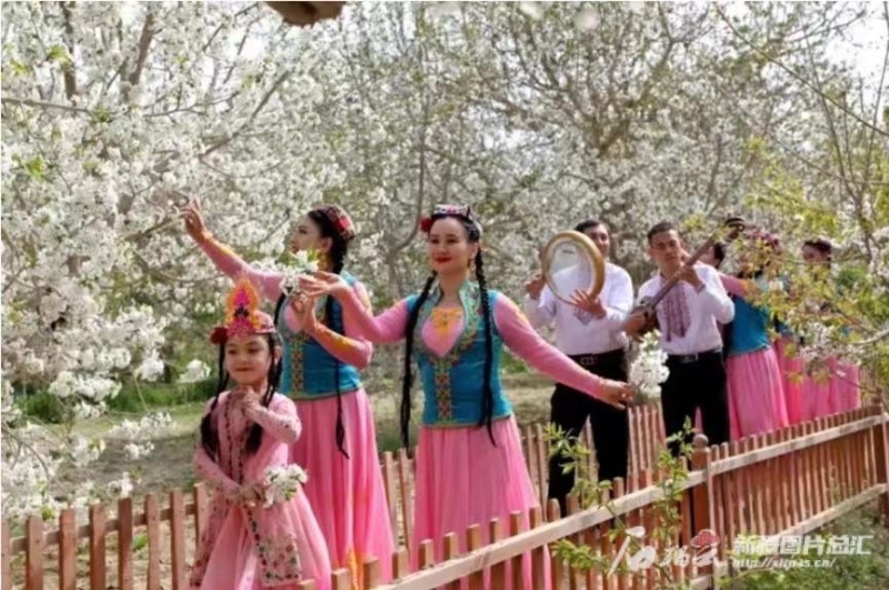 花丛中的表演(资料图)。莎车县融媒体中心供图 民生产业造福无限 和田团城景区,曾经是房屋低矮破旧,居民多以交易花鸟虫鱼为生的老城区。如今,已是和田地区唯一保留“团圈式”建筑风格和“阿依旺”式特色民居的国家4A级旅游景区。今年,该景区还成为自治区级夜间文化和旅游消费集聚区。买买提明·吾甫尔从小生活在这里,如今已80多岁,他的家人现在景区里开了一家和田特色药茶店,广东、西安、上海、北京的游客都来光顾他们的小店,收入可观。 吃上旅游饭,走上增收路。“造富”产业旅游业给新疆各族群众带来滚滚财富。 2023年,新疆新增旅行社563家,近2.5万名导游通过从事旅游服务实现就业增收;全疆从事旅游业的市场主体已超过37万户,和旅游相关的出行、住宿、餐饮、游览、购物、娱乐等,提供了源源不断的就业岗位和财富。而在日渐红火的乡村旅游中,客流量变成了农副特产品的销量,旅游一活,全盘皆活。 旅游业是带动性和关联度最高的产业之一,带动的相关产业高达110多个。旅游收入每增加1元、可带动相关行业增收4.5元,旅游投资每增加1元、可带动其他行业投资5元。一业兴、百业旺,新疆旅游释放出强大的“乘数效应”,成为高质量发展的引擎,更因为其扩大就业、富民惠民的特点被逐级放大,成了当之无愧的民生产业、幸福产业。 新疆,是世人向往的地方,是诠释“诗和远方”的注解。在中国着力完善现代旅游业体系,加快建设旅游强国,让旅游业更好服务美好生活、促进经济发展、构筑精神家园、展示中国形象、增进文明互鉴的浩荡东风推动下,新疆的旅游业正日益成为新兴的战略性支柱产业和具有显著时代特征的民生产业、幸福产业。