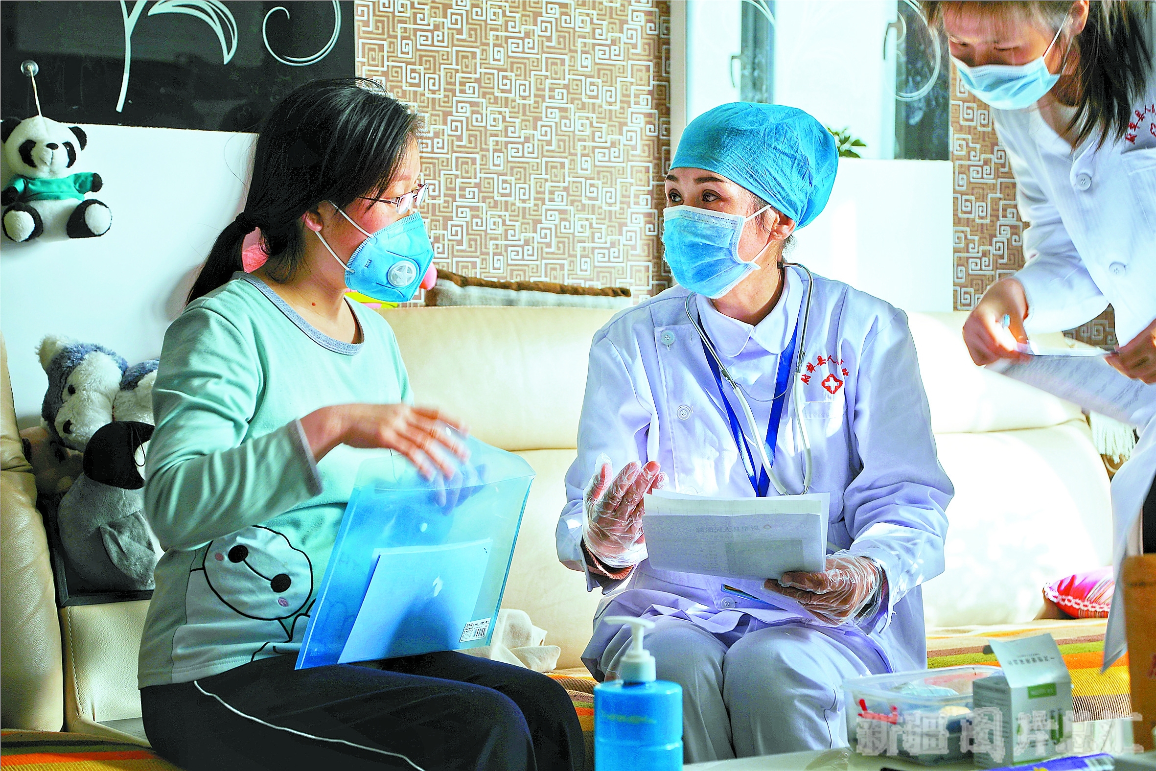 3月5日,尉犁县人民医院医生正在为居民讲解医疗知识。当日,尉犁县人民医院组织由专科医生、乡镇医生组成的家庭医生服务队,上门为居民提供科学居家防护、常见病诊疗、慢性病用药指导和保健等服务,提高群众的健康意识。 □庞博摄