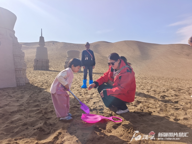 “从伊犁自驾去嘉峪关,回来路过鄯善县,带孩子玩沙,很开心。”游客余泽峰说。