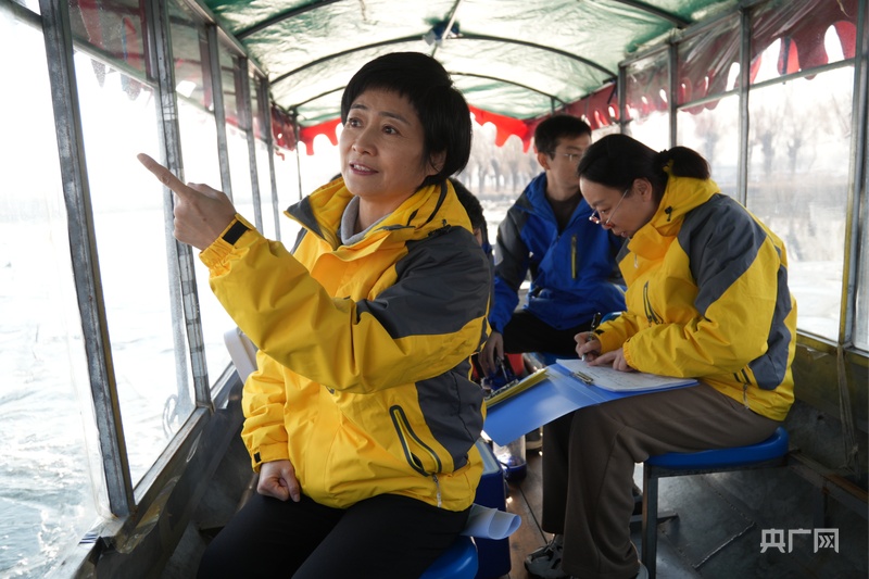吴海梅和同事巡查白洋淀,守护白洋淀碧水清波(央广网记者 王艺霖 摄)