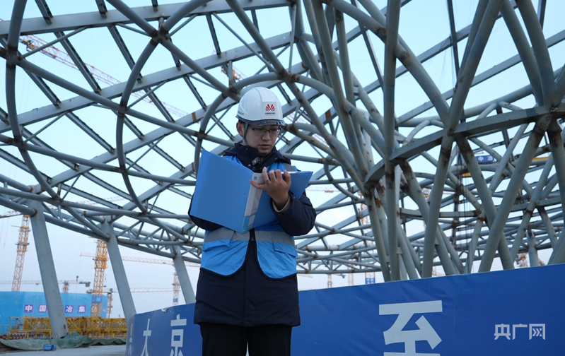 崔浩田在记录雄安国贸中心项目建设进度(央广网记者 王艺霖 摄)