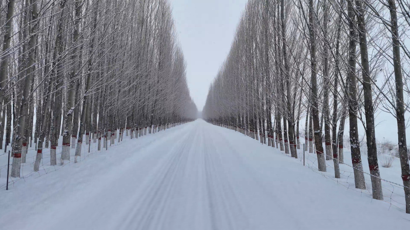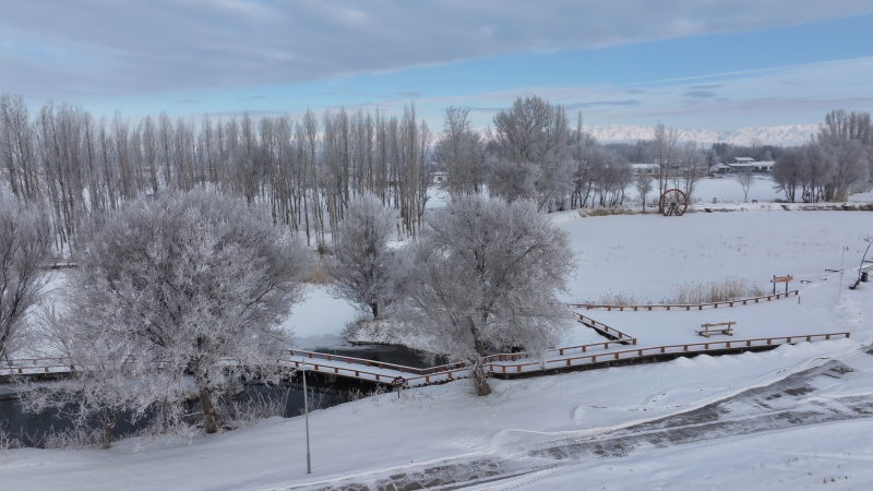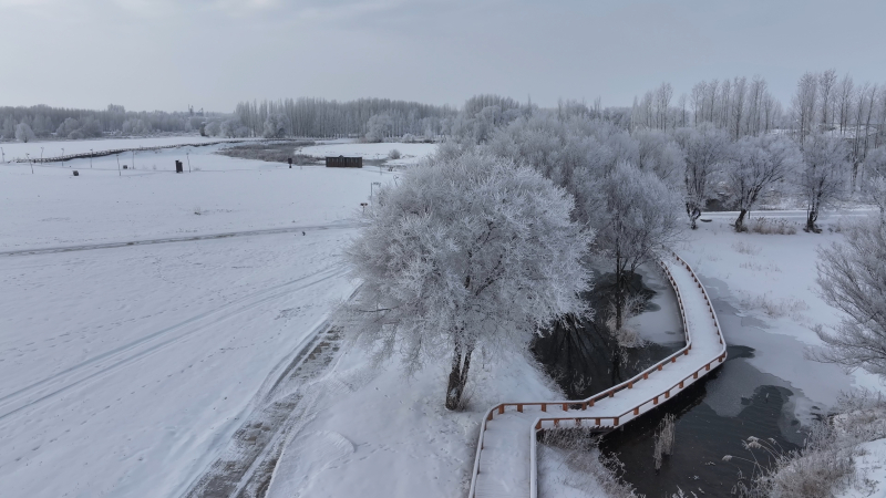 1月3日,一场纷飞的雪花轻舞之后,额敏县银装素裹。晨曦初破,轻纱般的雾气缭绕。天空染上了浅灰的色调,宛如古老诗篇中的沉稳背景,映衬着枯枝苍劲。银霜挂满枝头,每一棵树都化作了冬日里最精致的雕塑,共同绘就一幅幽静而冷艳的冬日长卷。