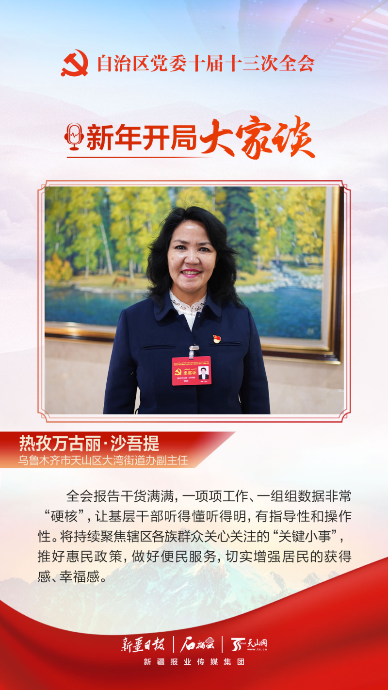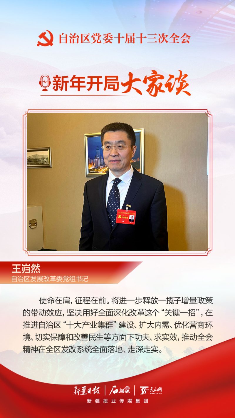 1月5日,自治区党委十届十三次全会在乌鲁木齐召开,系统总结2024年工作,安排部署2025年重点任务,推动新疆高质量完成“十四五”规划目标任务,以高质量发展的实际成效全面推进中国式现代化新疆实践。会上代表们都说了些啥,一起来看看!