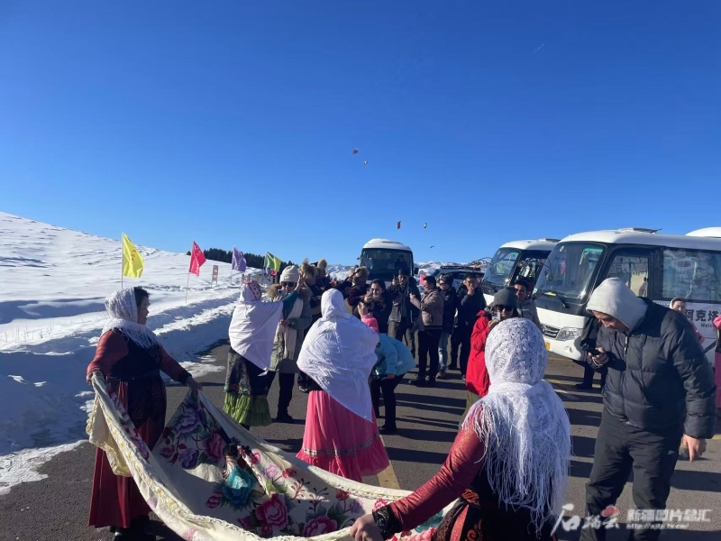 游客在特克斯县阿克塔斯姑娘峰景区迎客礼。石榴云/新疆日报记者 姚刚摄 该景区项目负责人周江山介绍,冬天的姑娘峰景区也别有一番风情,“这个冰雪季,景区除了传统的滑雪项目,还推出了恰秀等民俗表演,雪地火锅、雪地秘境穿越等项目,进一步丰富景区冰雪游的可玩性,很多游客给景区留言:游玩项目多,一天的时间根本玩不过来。” 中午时分,姜景萍和家人从昭苏县玉湖景区来到阿克塔斯姑娘峰景区,正好赶上景区民俗表演,一首《打羊毛》让她记忆深刻。“我听当地导游说,歌曲主要描写了当地妇女日常劳作的场景,歌曲音乐婉转,还可以看到打羊毛、制作酸奶、织地毯等日常生活场景的演示,让人除了看雪景还可以了解当地人的生活。”
