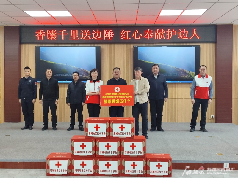 1月17日,塔城地区红十字会和乌鲁木齐博盾工贸有限公司博盾民族餐饮文化发展美都将5000个馕等物资捐赠给护边员代表。樊卓海摄