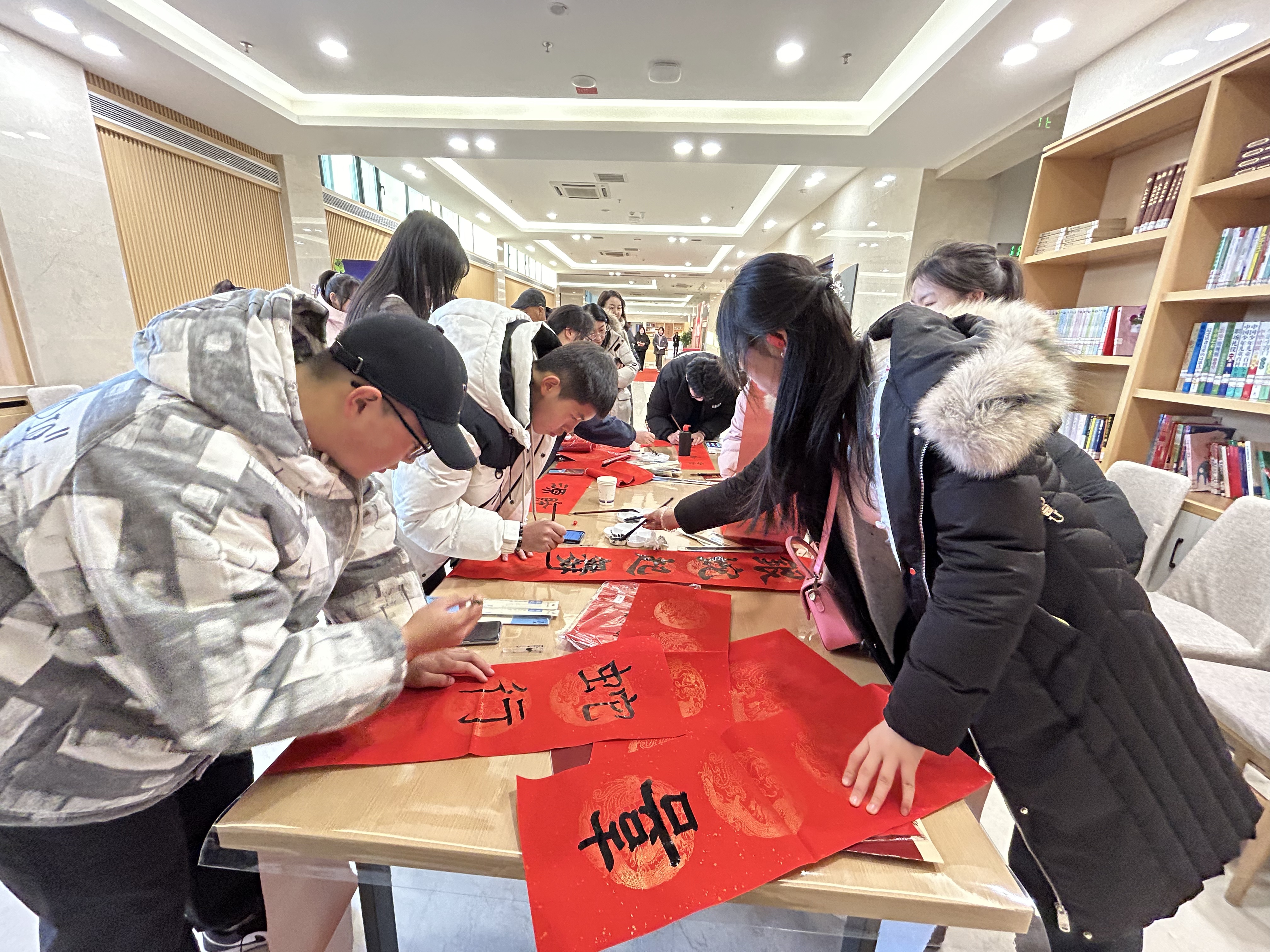 博尔塔拉蒙古自治州博物馆馆内翰墨飘香,来自博乐市第七中学、精河县高中的同学纷纷拿起毛笔,饱蘸墨汁,挥毫泼墨。一幅幅寓意吉祥的春联,不仅饱含着浓浓的新春气息,更将传统文化与爱国情怀紧密相连。