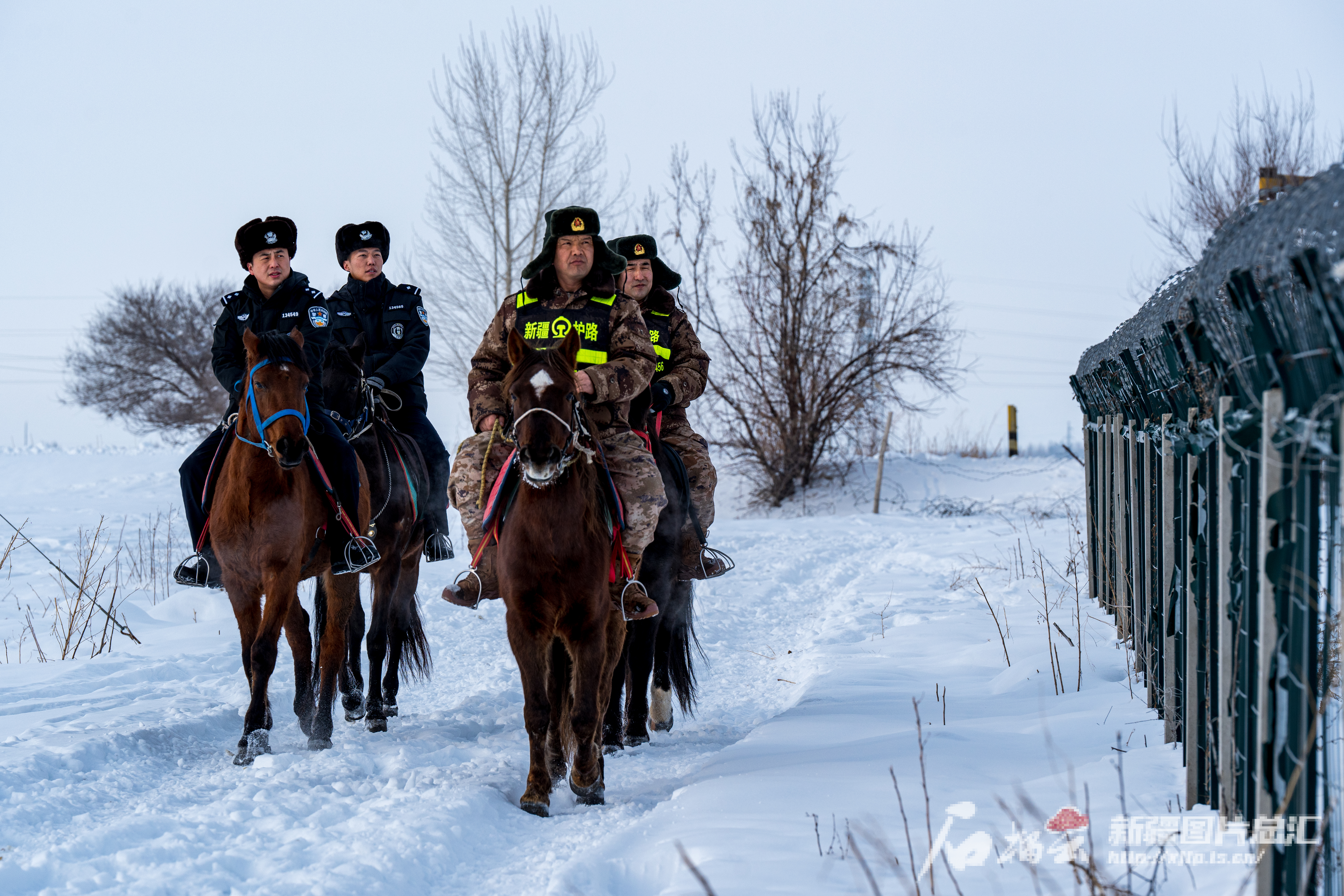 春节假期临近结束,阿勒泰市出现降雪天气,气温骤降,部分路段发生积雪结冰现象,为确保春运返程旅客安全,阿勒泰站派出所值守民警骑马踏上巡线路,确保铁路安全运行。