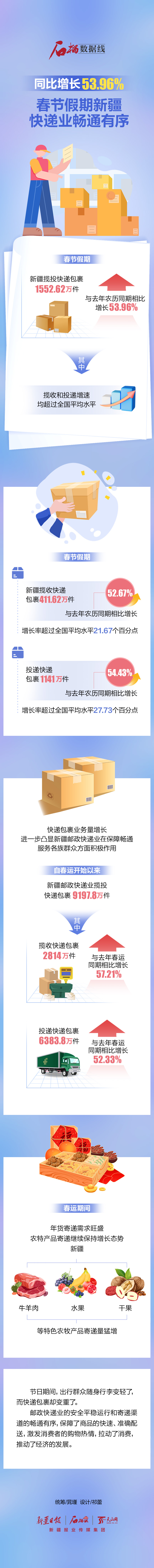 石榴数据线丨同比增长53.96% 春节假期新疆快递业畅通有序