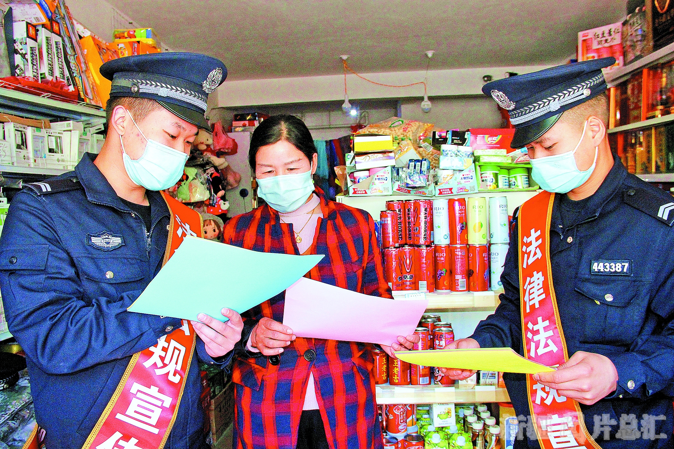 5月7日,民警在向居民宣讲妇女权益保障法。当日,阿勒泰吉木乃边境管理大队老吉木乃边境派出所组织民警走进辖区,开展以“法律宣传暖人心妇女权益有保障”为主题的宣传活动。□石晓坤摄