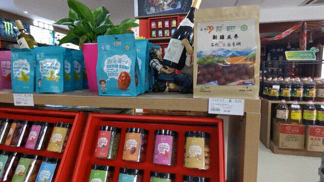 除了加油站,街头门店也可以买到南疆贫困地区的林果产品。