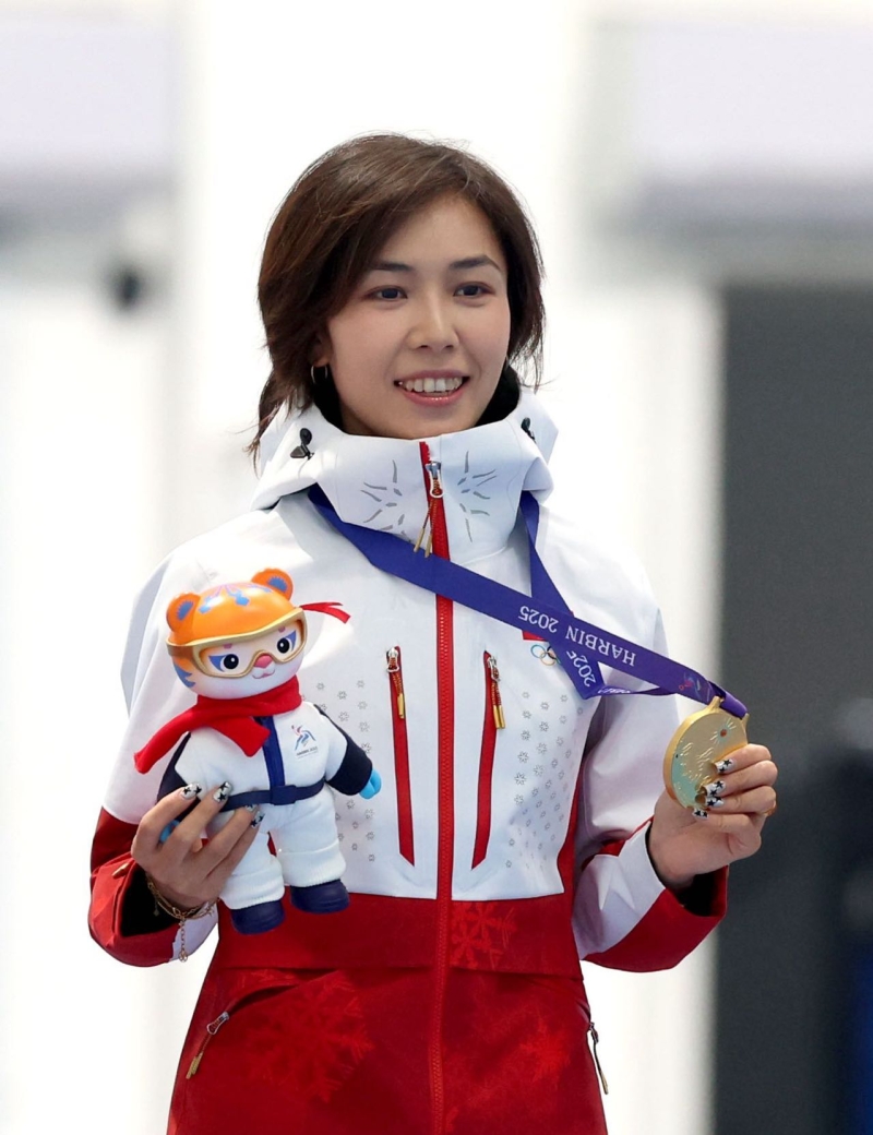 当阿合娜尔·阿达克与队友杨滨瑜、韩梅在哈尔滨亚冬会速度滑冰女子团体追逐赛中率先冲过终点线时,天津冰雪运动的历史在此刻被改写——首金诞生!