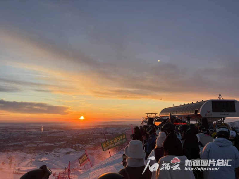 2024年11月,在阿勒泰将军山国际滑雪度假区,落日时刻,是雪场人气最旺的时候。石榴云/新疆日报 记者王晶晶摄