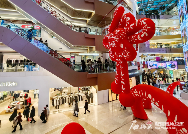 今年春节期间,乌鲁木齐市消费市场持续火爆,展现出消费新活力。图为乌鲁木齐市一家商场人来人往。石榴云/新疆日报记者 李雄心摄
